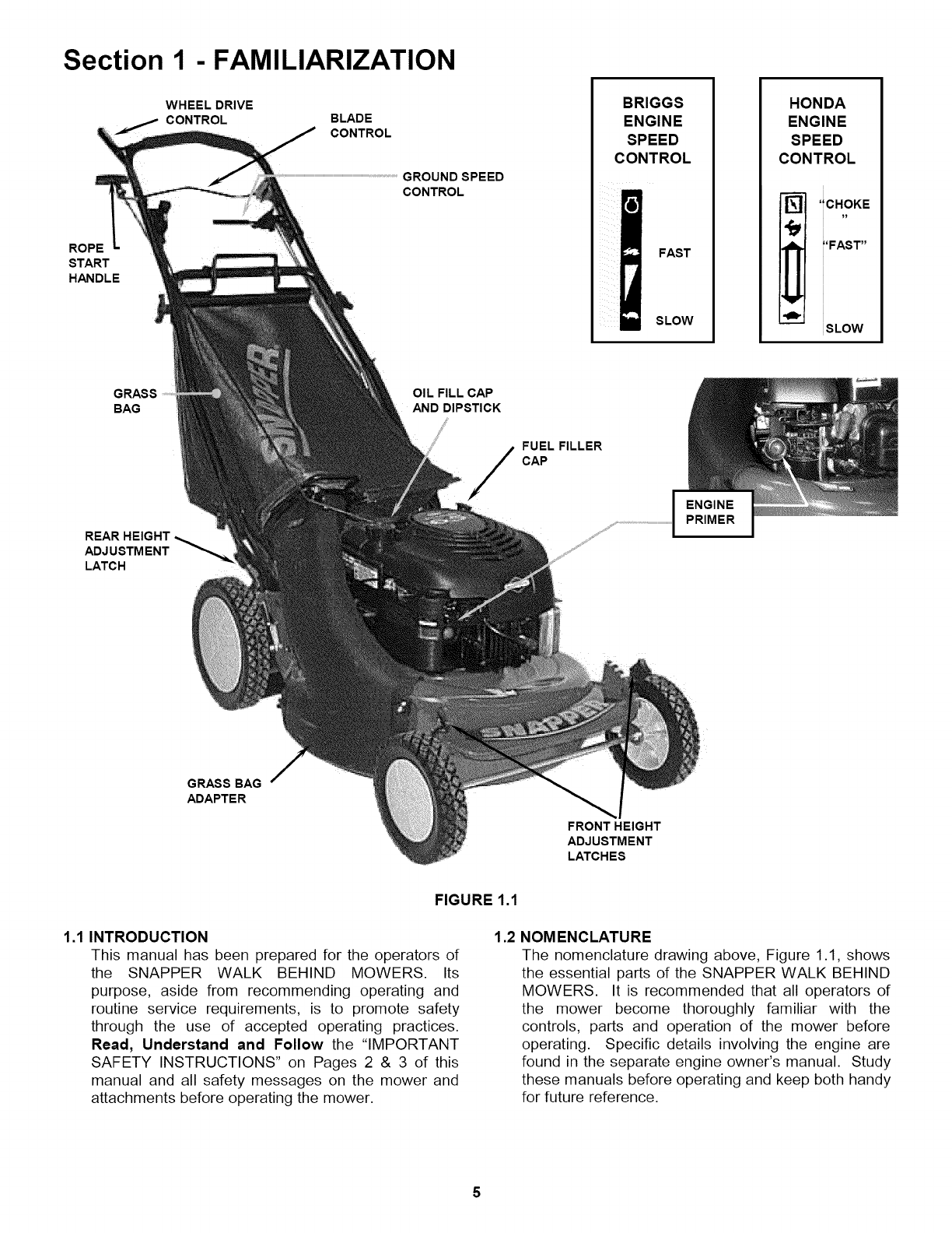 Thank you for buying a SNAPPER Product! Before operating your Walk Behind, read this manual carefully and pay