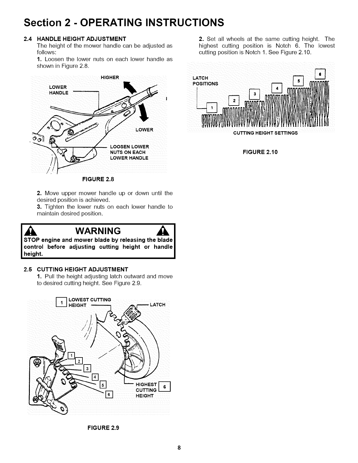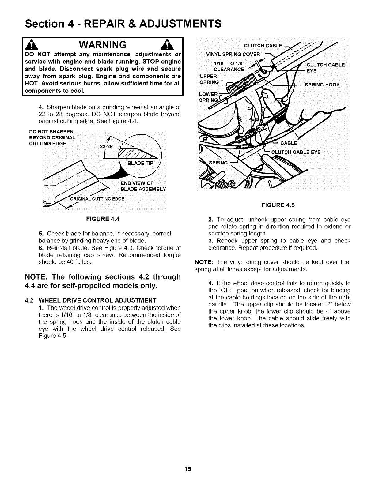 5. DO NOT pull mower backwards unless