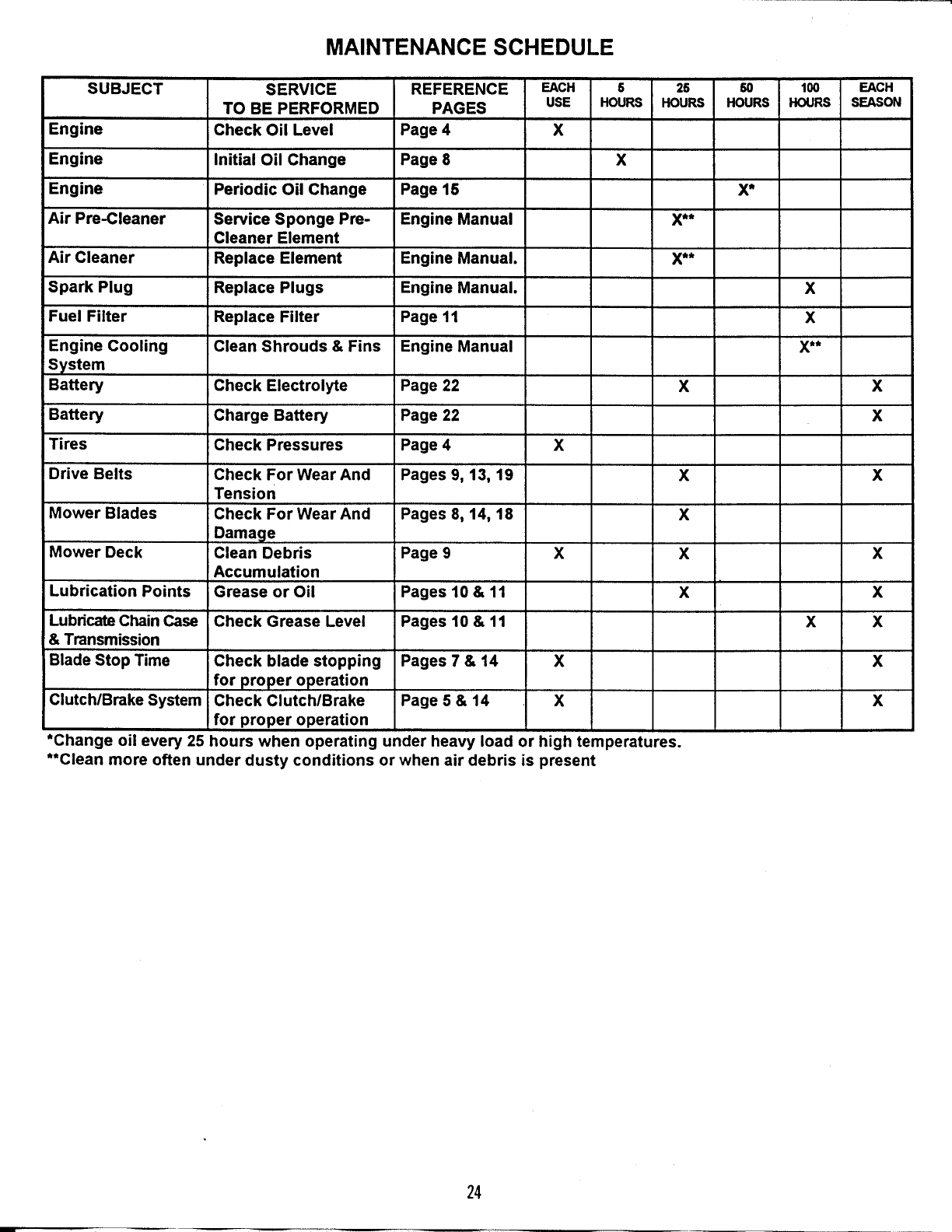 *Change oil every 25 hours when operating under heavy load or high temperatures.
