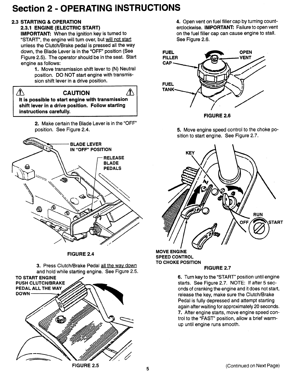 3. Avoid uphill starts. If machine is stopped going