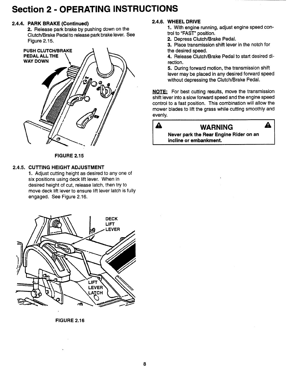 Snapper 250816B User Manual REAR ENGINE RIDING MOWER Manuals And Guides L0807729