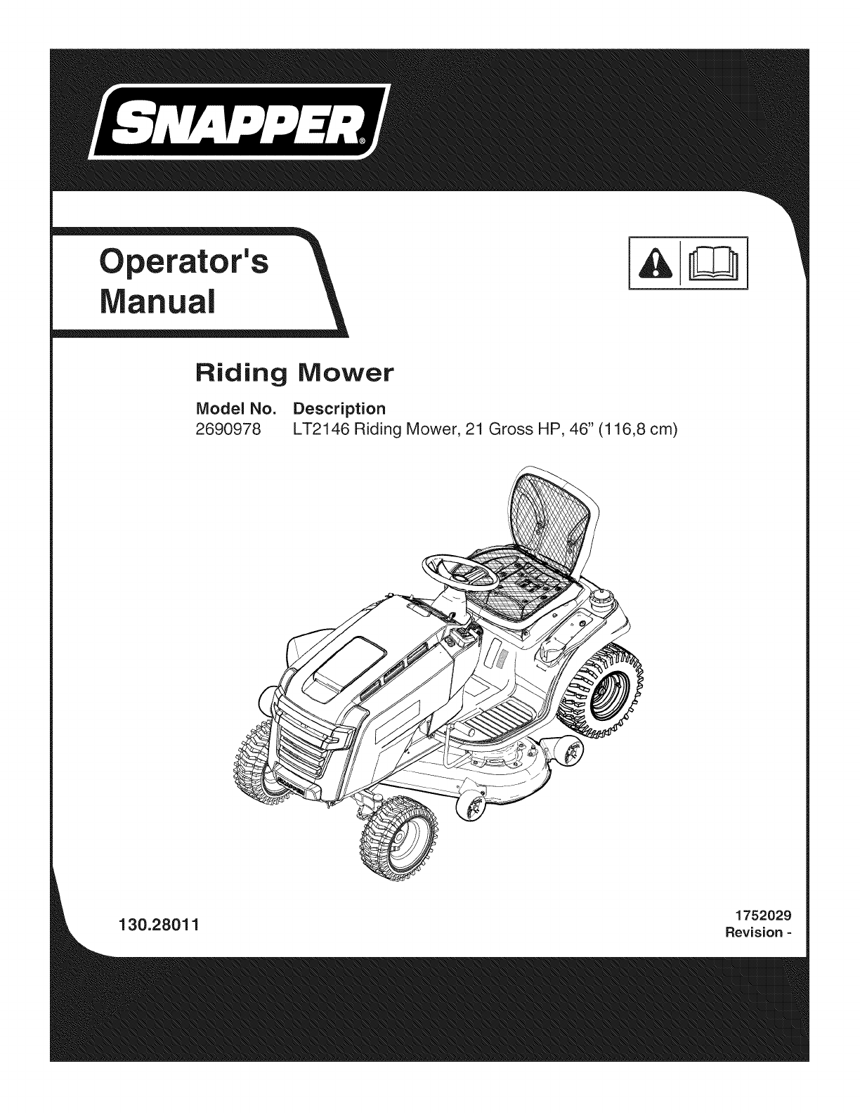 User Manual: Snapper 2690978 2690978 SNAPPER TRACTOR - Manuals and Guides View the owners manual for your SNAPPER TRACTOR #2690978. Home:Lawn & Garden Parts:Snapper Parts:Snapper TRACTOR Manual