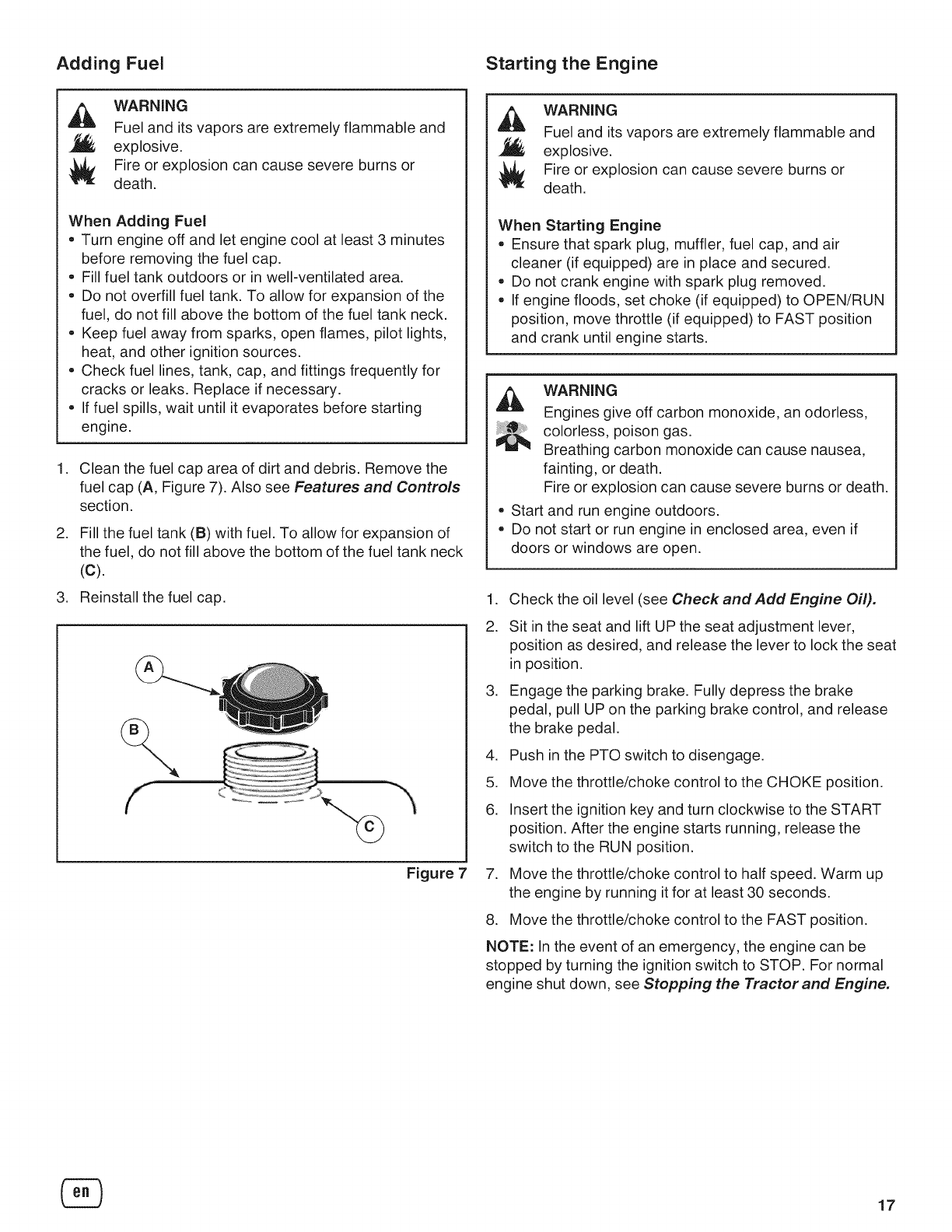 Adding Fuel ...................................................... 17