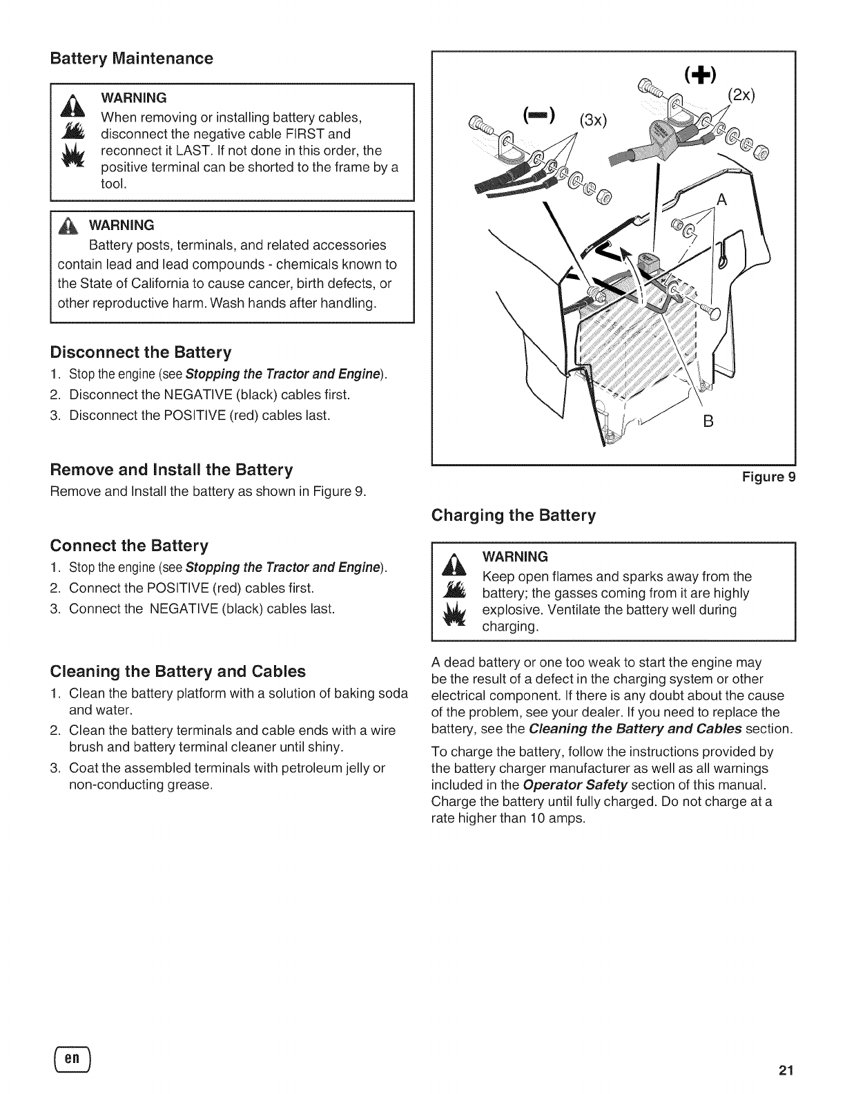 Cleaning the Battery and Cables .................................... 21