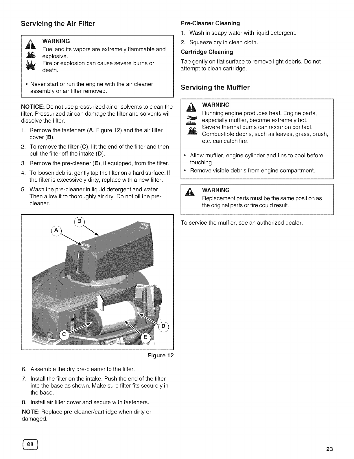 Servicing the Air Filter ............................................. 23
