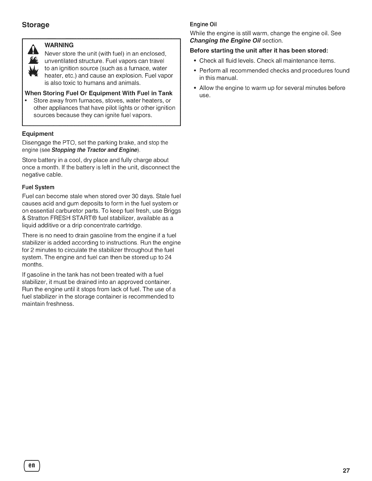 Storage ......................................................... 27