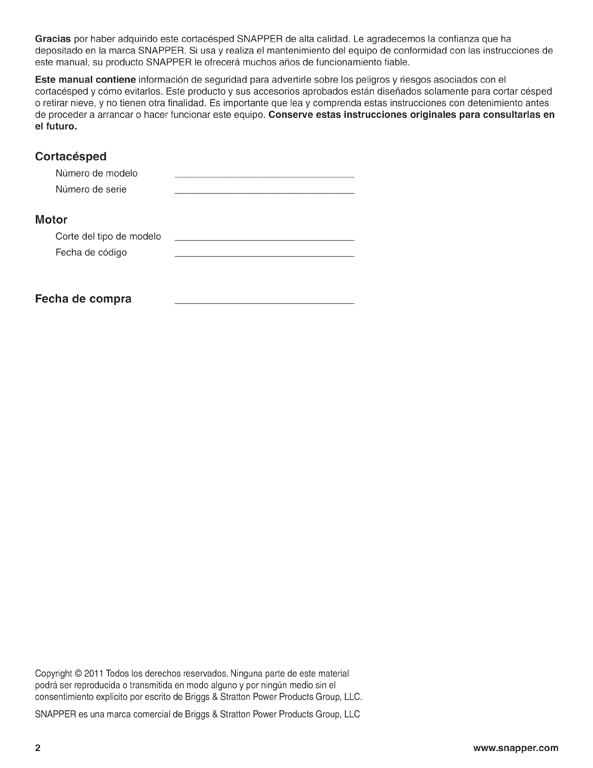 SNAPPERbrand.Whenoperatedandmaintainedaccordingtotheinstructionsinthismanual,yourSNAPPERproductwill