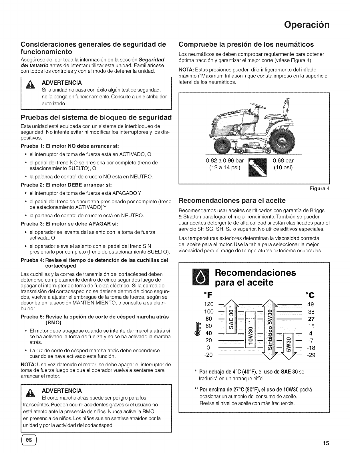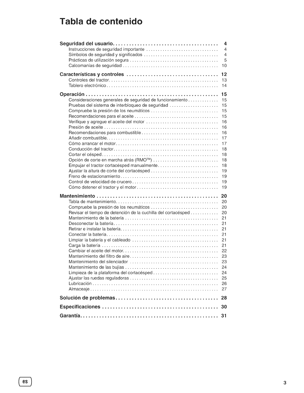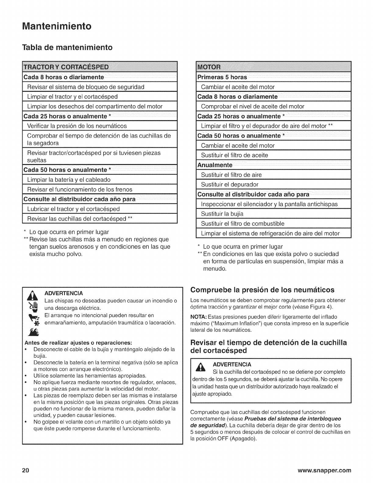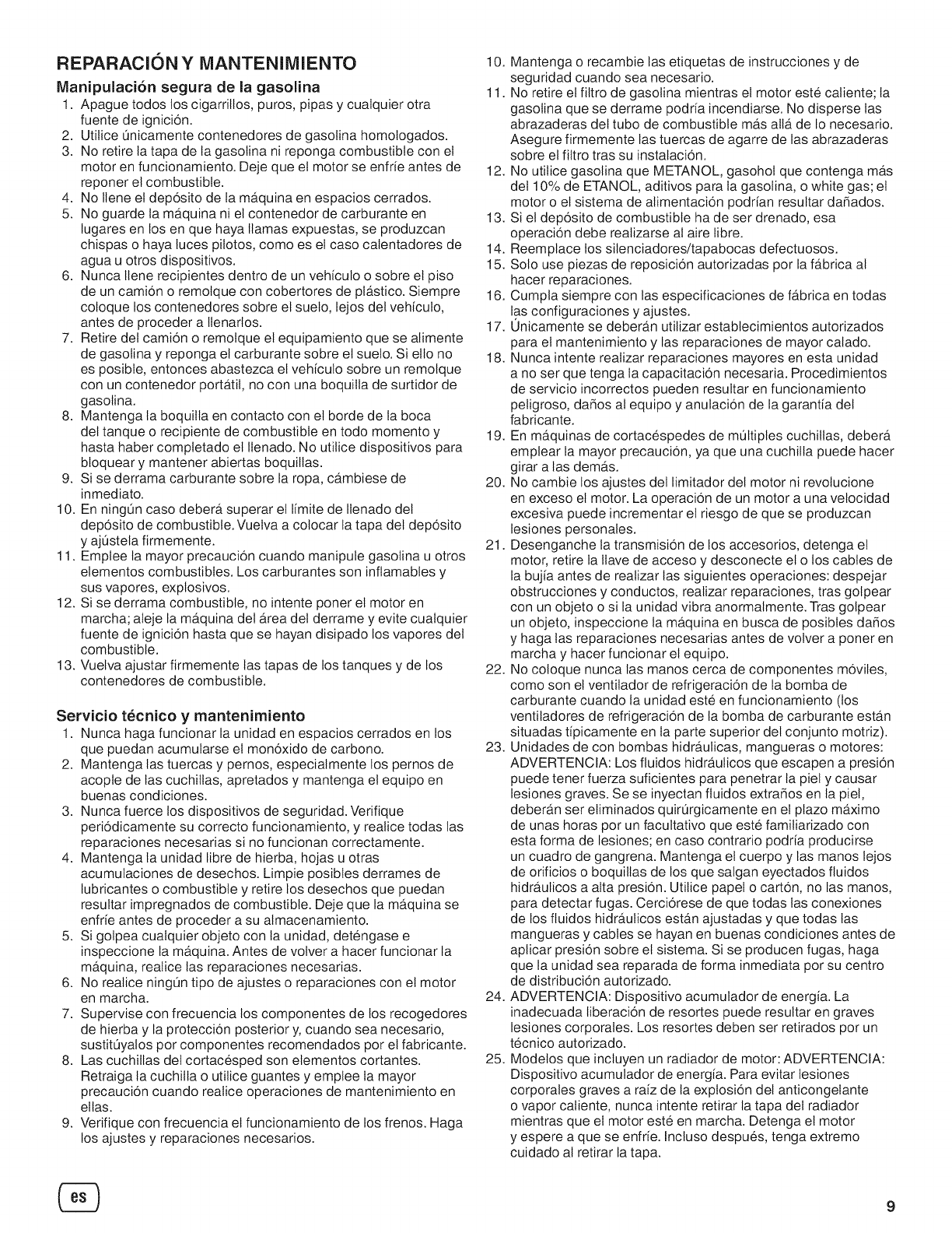 proporcionan en el manual del usuario, y debe ser reparado usando para ello piezas originales de Briggs & Stratton. La garantia no cubre los