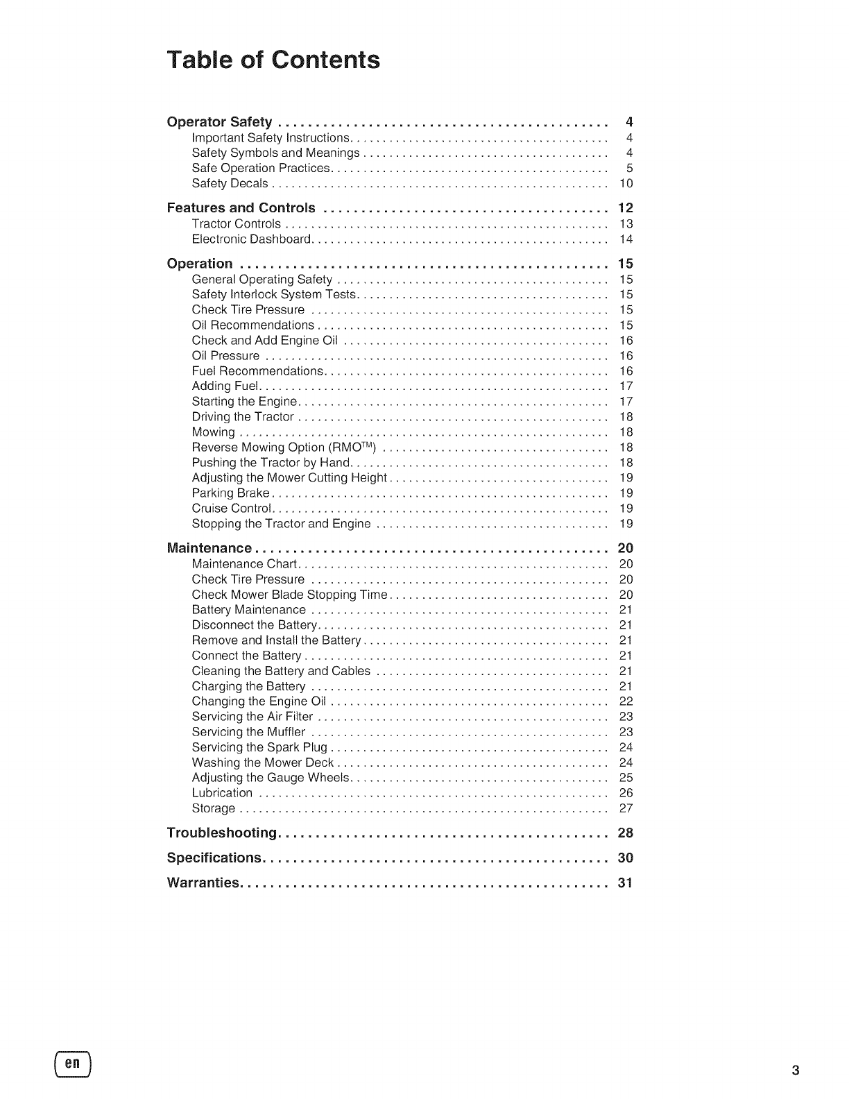 Driving the Tractor ................................................ 18