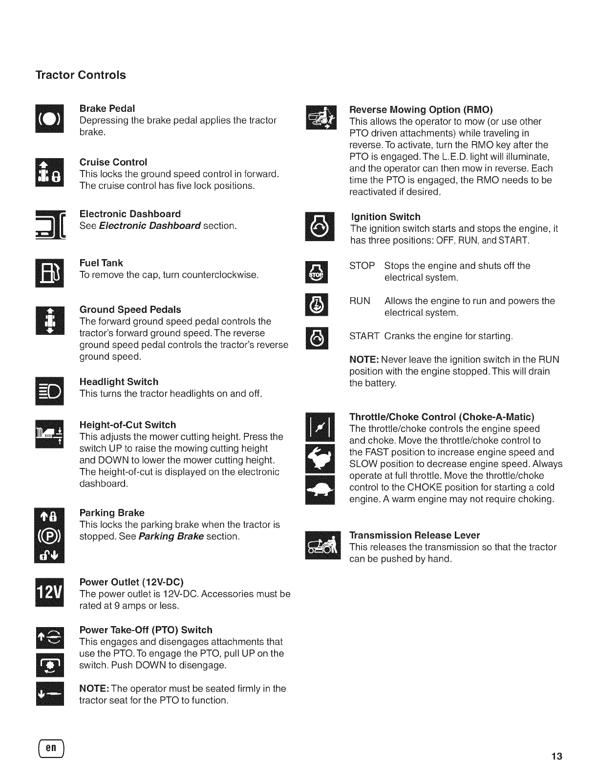 Tractor Controls .................................................. 13