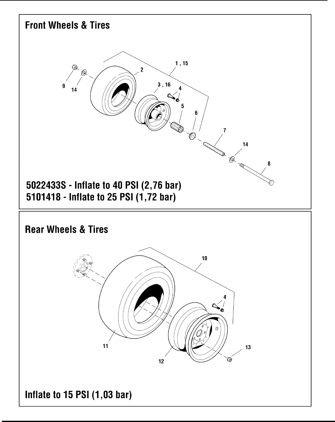 16 5101418X1 2 WHEEL ASSEMBLY, Complete (INCLUDES REF NO. 4 & 5)