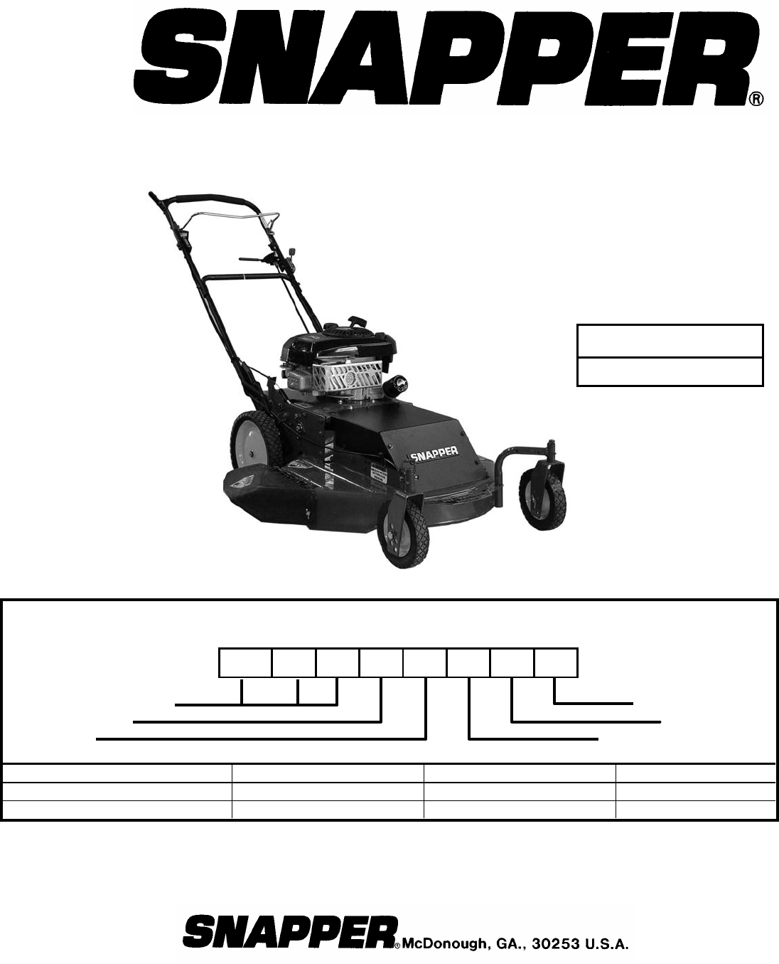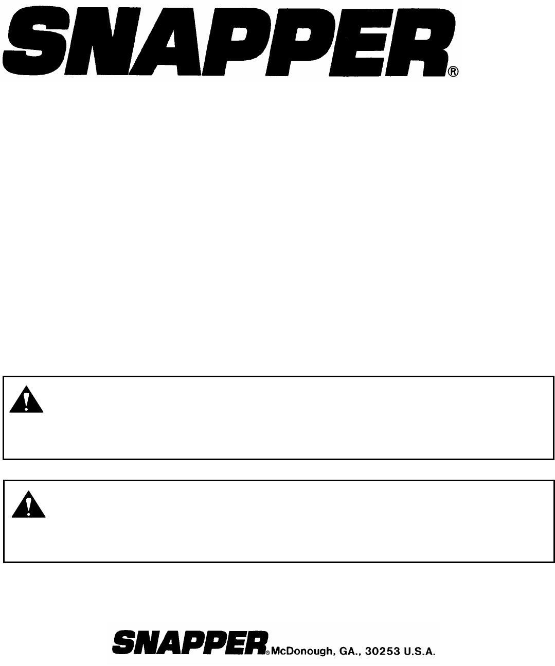 Thank you for buying a SNAPPER Product! Before operating your machine, read this manual carefully and pay