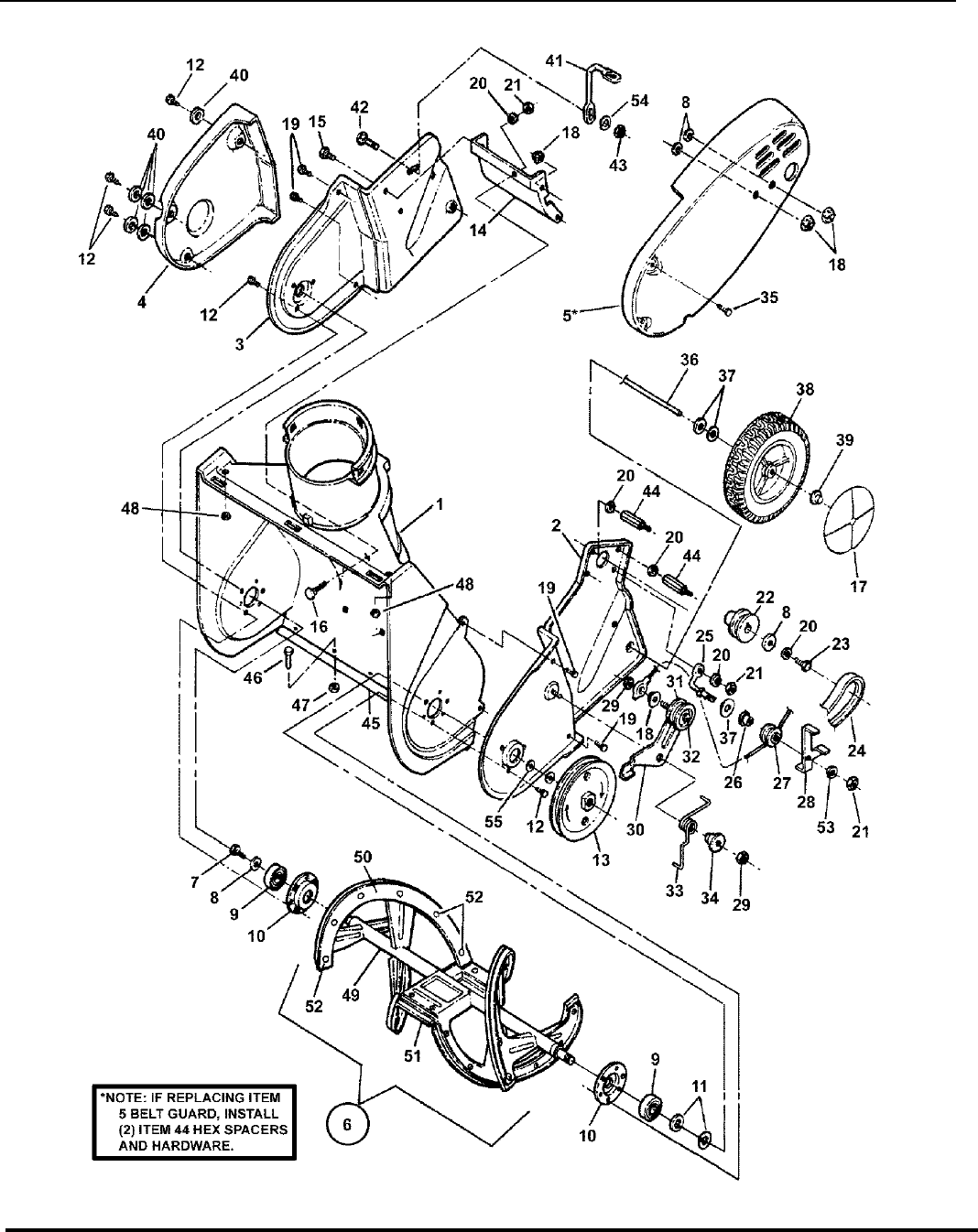 Note* The heads of item 12 carriage bolts are inside the auger housing.