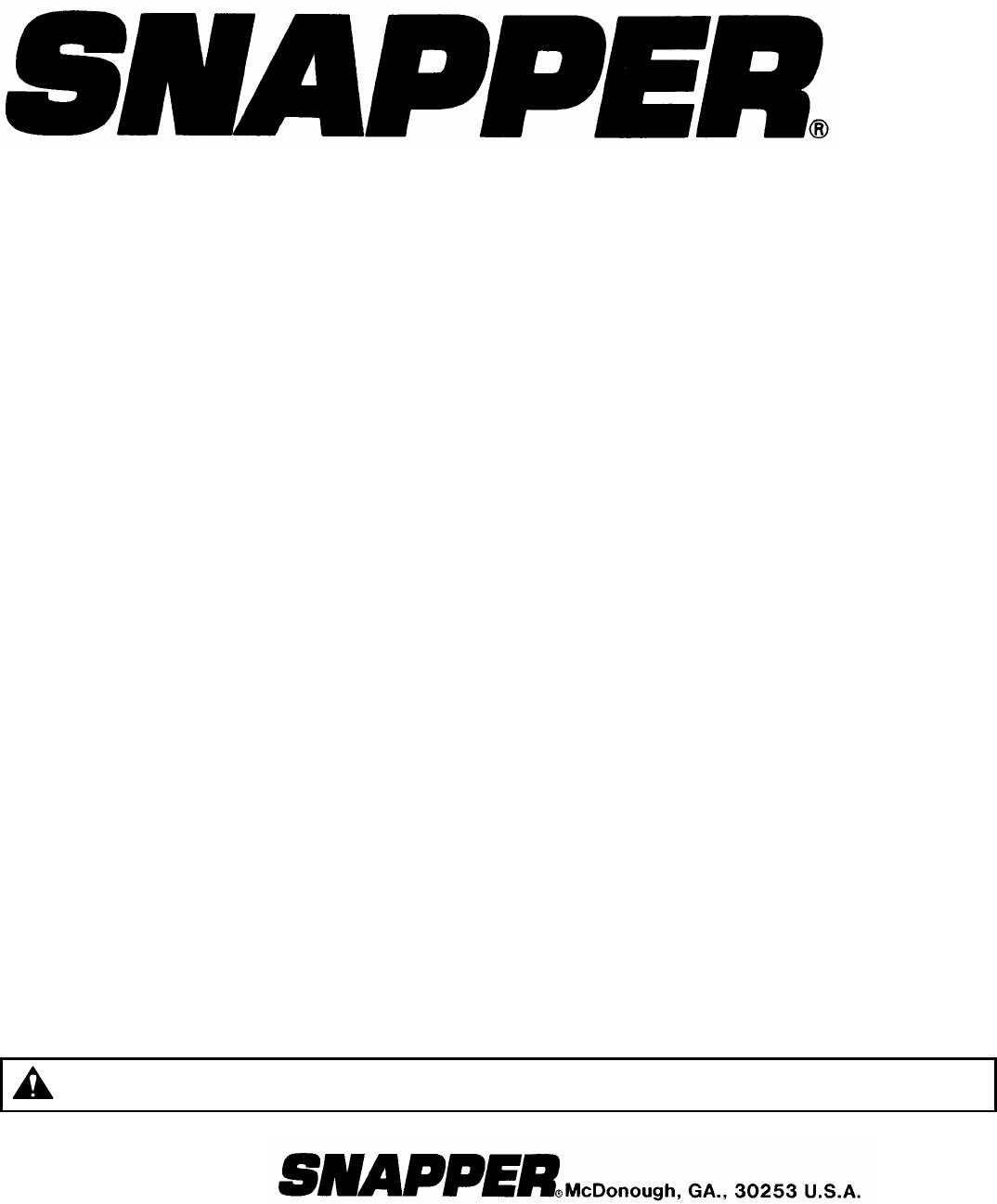 Thank you for buying a SNAPPER Product! Before operating your machine, read this manual carefully and pay