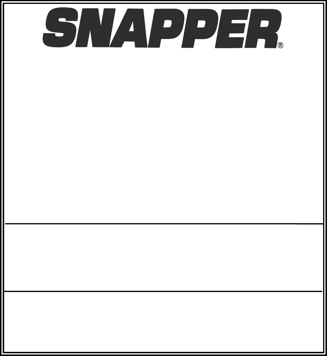 dealer cannot answer to your satisfaction, call or write the Customer Service Department at SNAPPER,