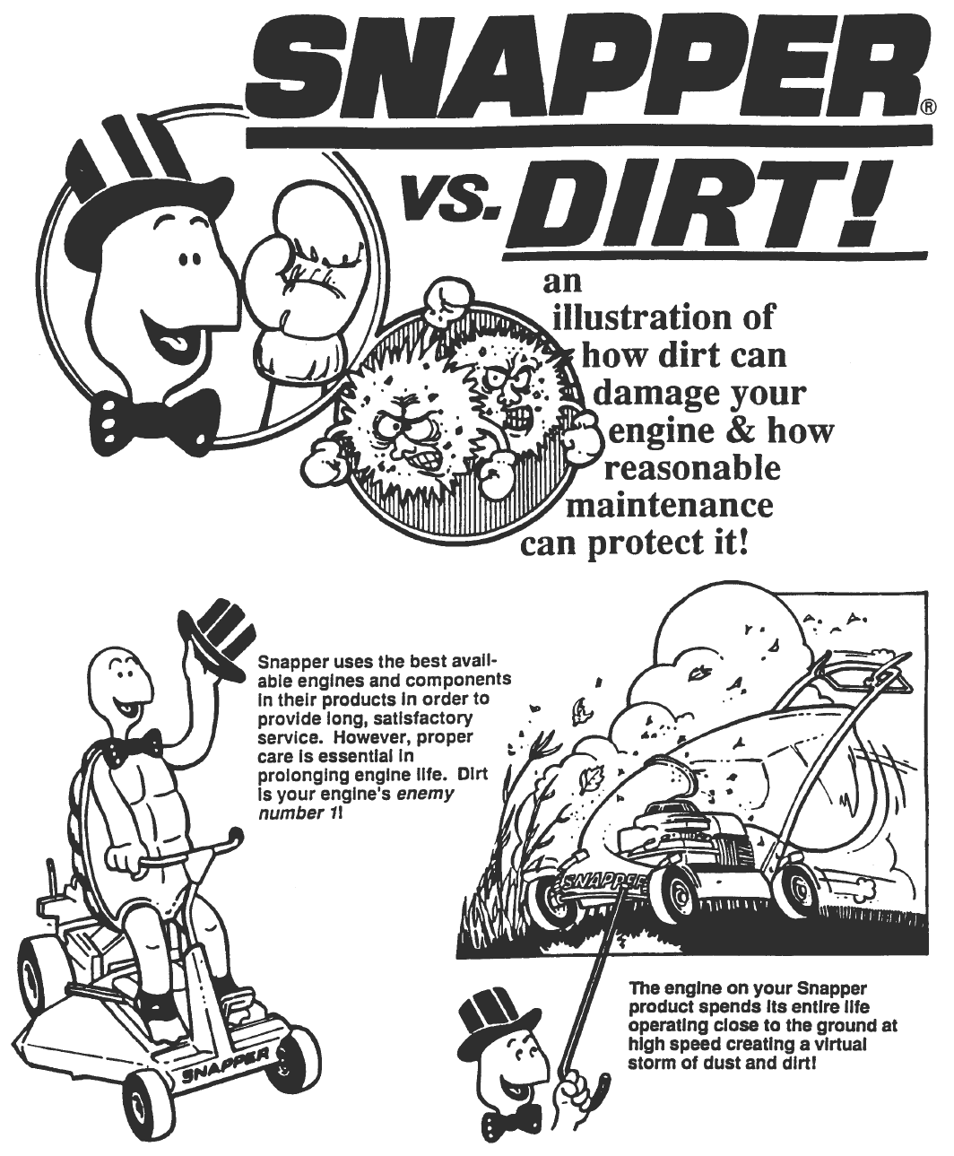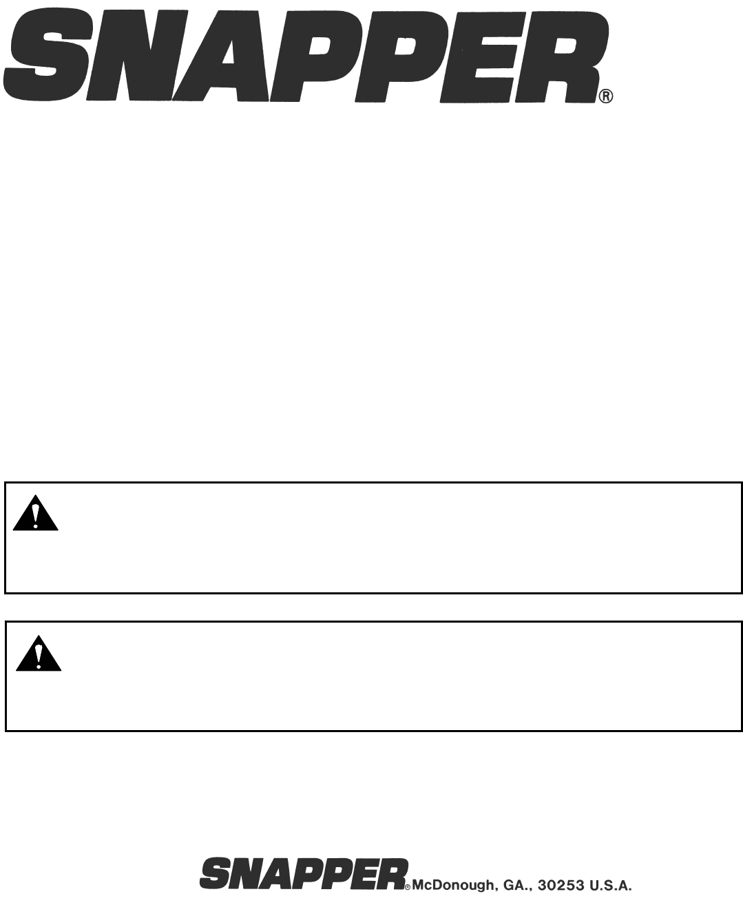 manual, and on the machine, engine and attachments. If you have any questions about your Snapper