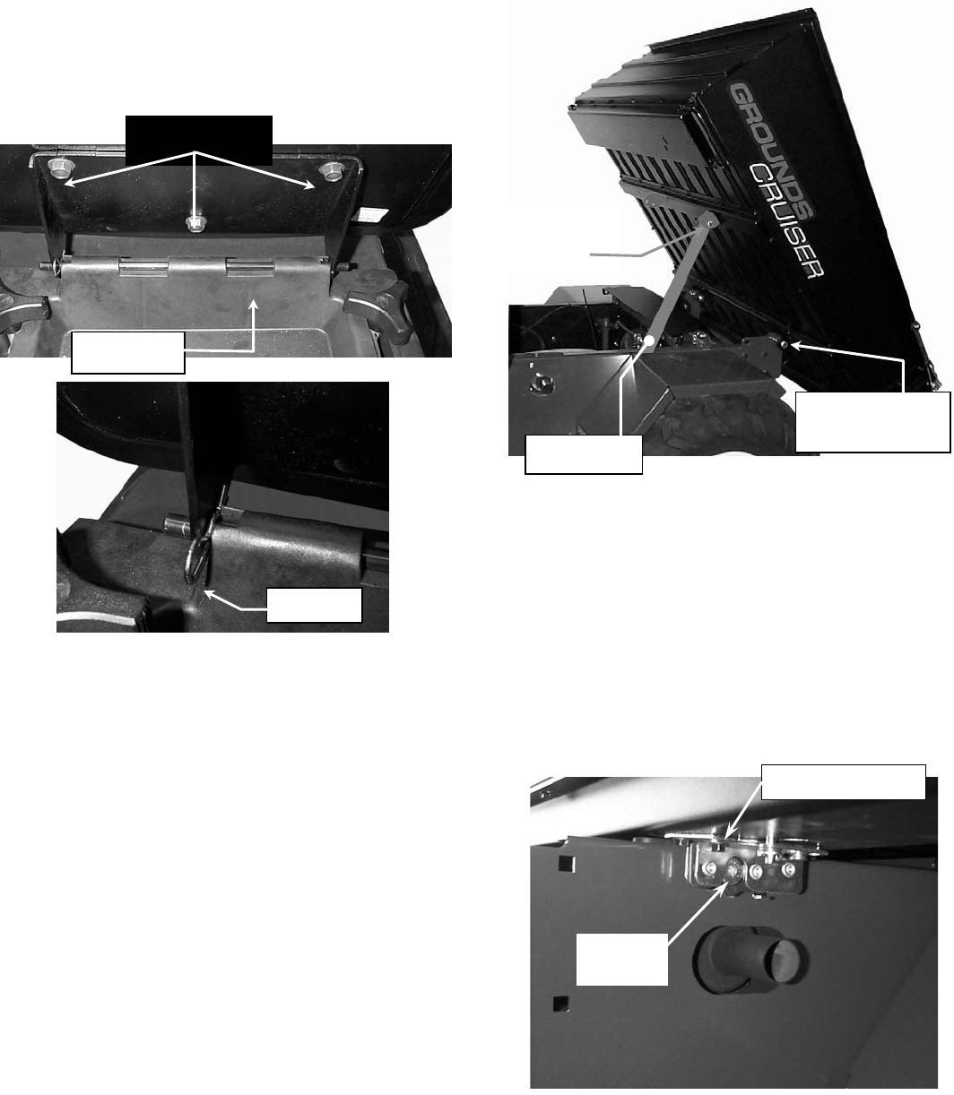 Attach bed to pivots at rear of frame. A prop rod is