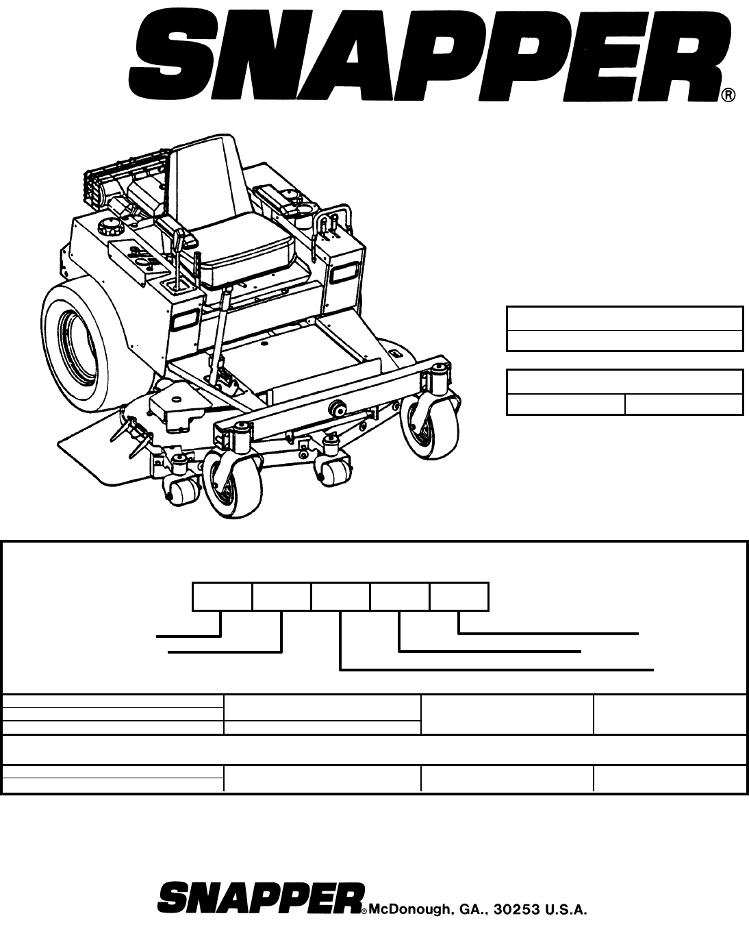 Snapper’s Product Registration Center, P.O. Box 1379, McDonough, Georgia. 30253