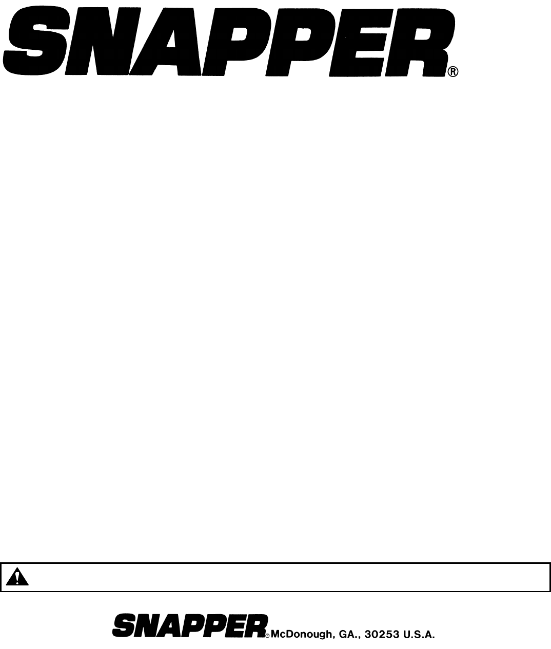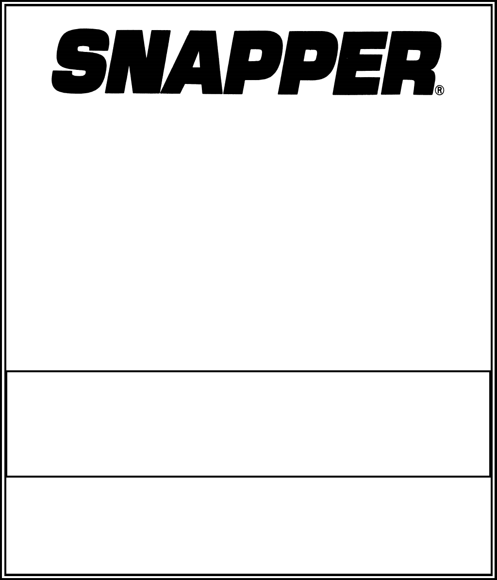 Thank you for buying a SNAPPER Product! Before operating your machine, read this manual carefully and pay