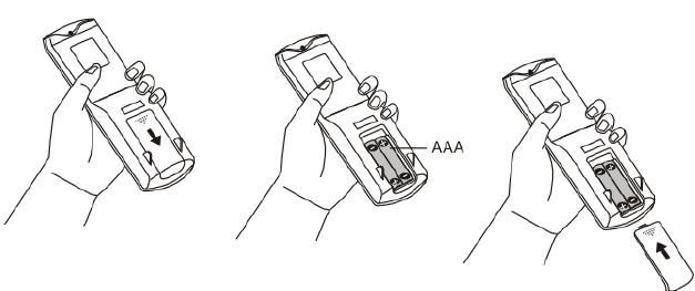 2. Install (2) "AAA" batteries as shown. Make sure that proper polarity (+ or -) is