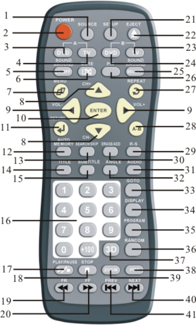 PLAY/PAUSE/RIGHT, EJECT, DOWN