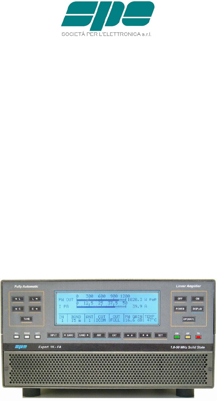Congratulations for choosing the SPE EXPERT 1K-FA linear amplifier It is small, and