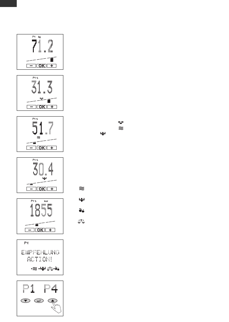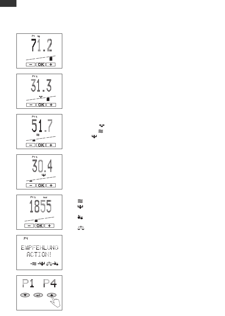 fett-, Körperwasser-, Muskel-Anteil sowie