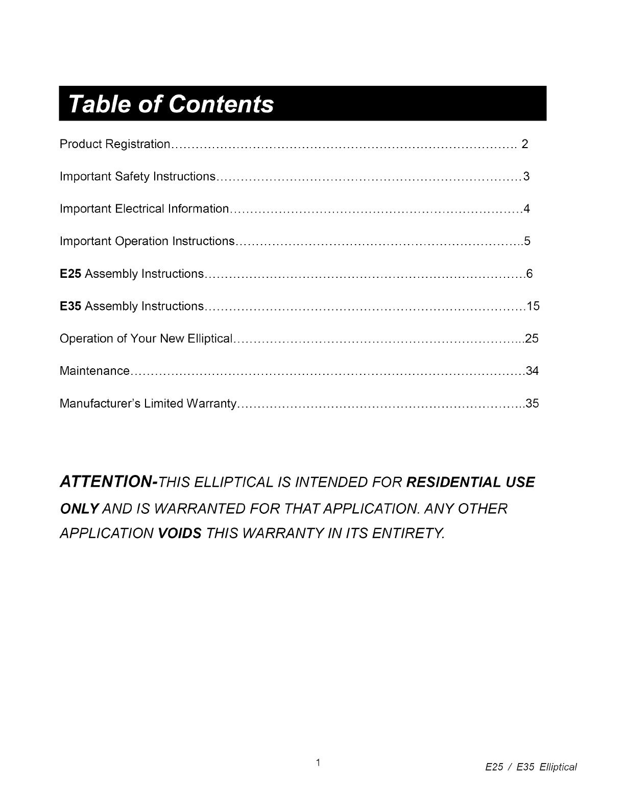ATTENTION-THIS ELLIPTICAL IS INTENDED FOR RESIDENTIAL USE