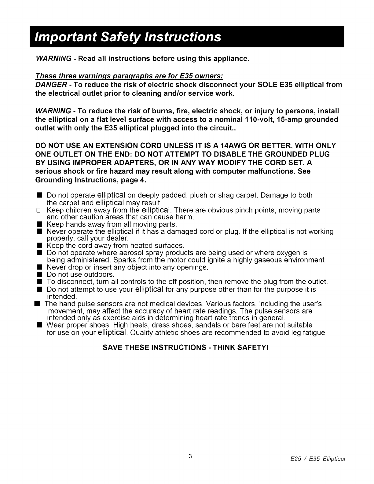 SAVE THESE INSTRUCTIONS - THINK SAFETY!