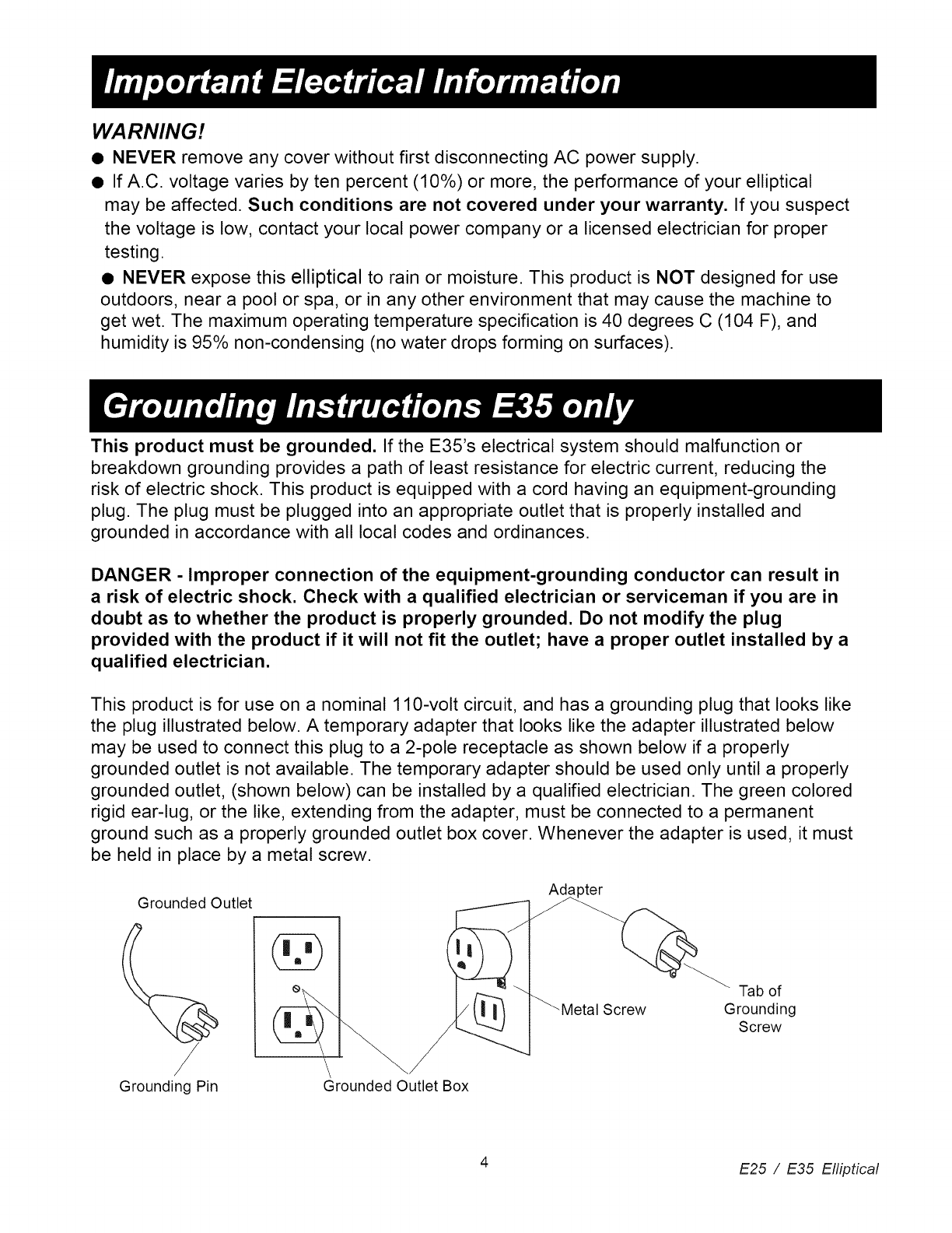 • If A.C. voltage varies by ten percent (10%) or more, the performance of your elliptical