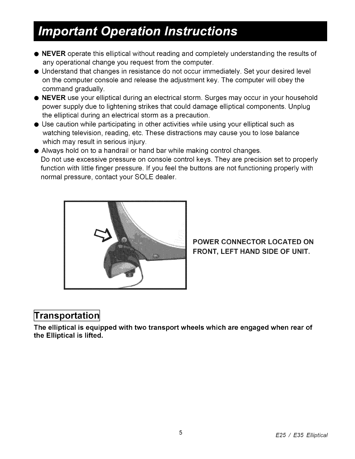 OPERA TING YOUR NEW ELLIPTICAL!