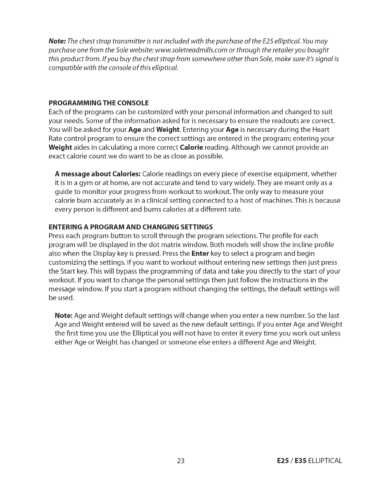 Sole E25 2011 User Manual ELLIPTICAL MANUF THRU MAY 2012 Manuals And Guides 1206662L