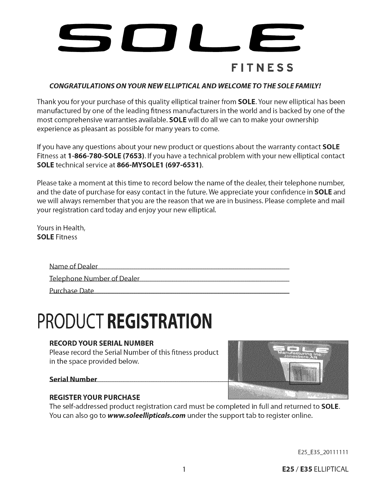 Thank you for your purchase of this quality elliptical trainer from SOLE. Your new elliptical has been