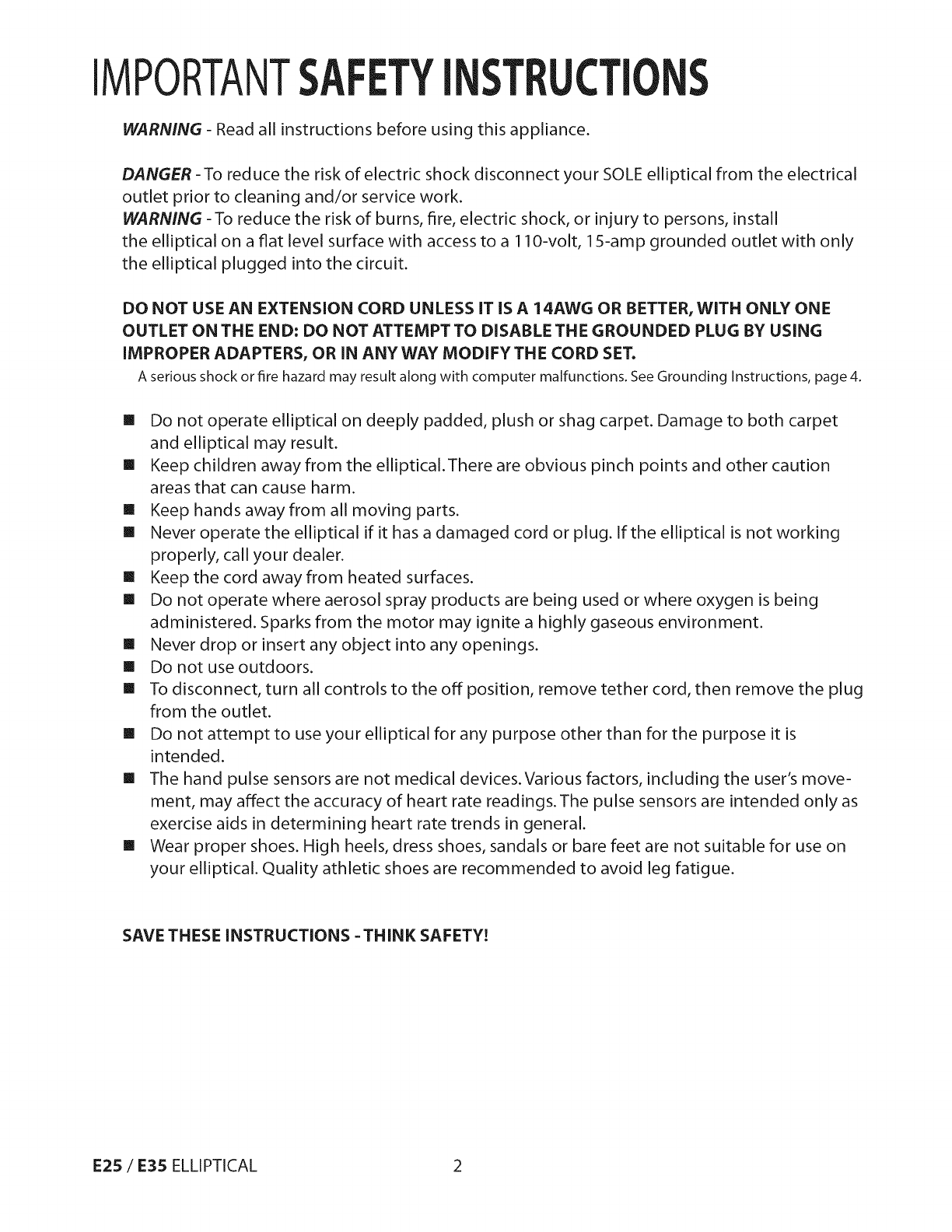 SAVE THESE INSTRUCTIONS =THINK SAFETY!