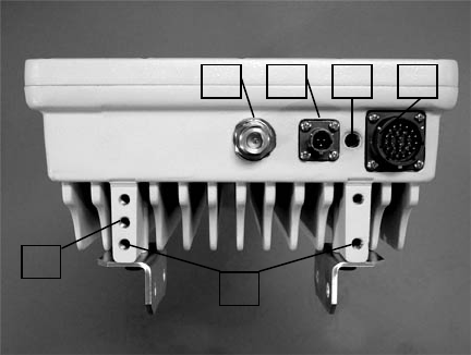 The bottom face of the outdoor base station contains 3 access ports as described herein.