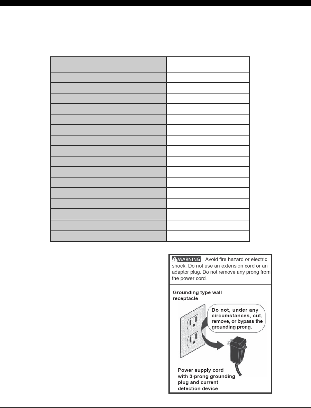 supply cord with a grounded plug. To minimize the possibility of electrical shock, the cord must be plugged into a 3 prong