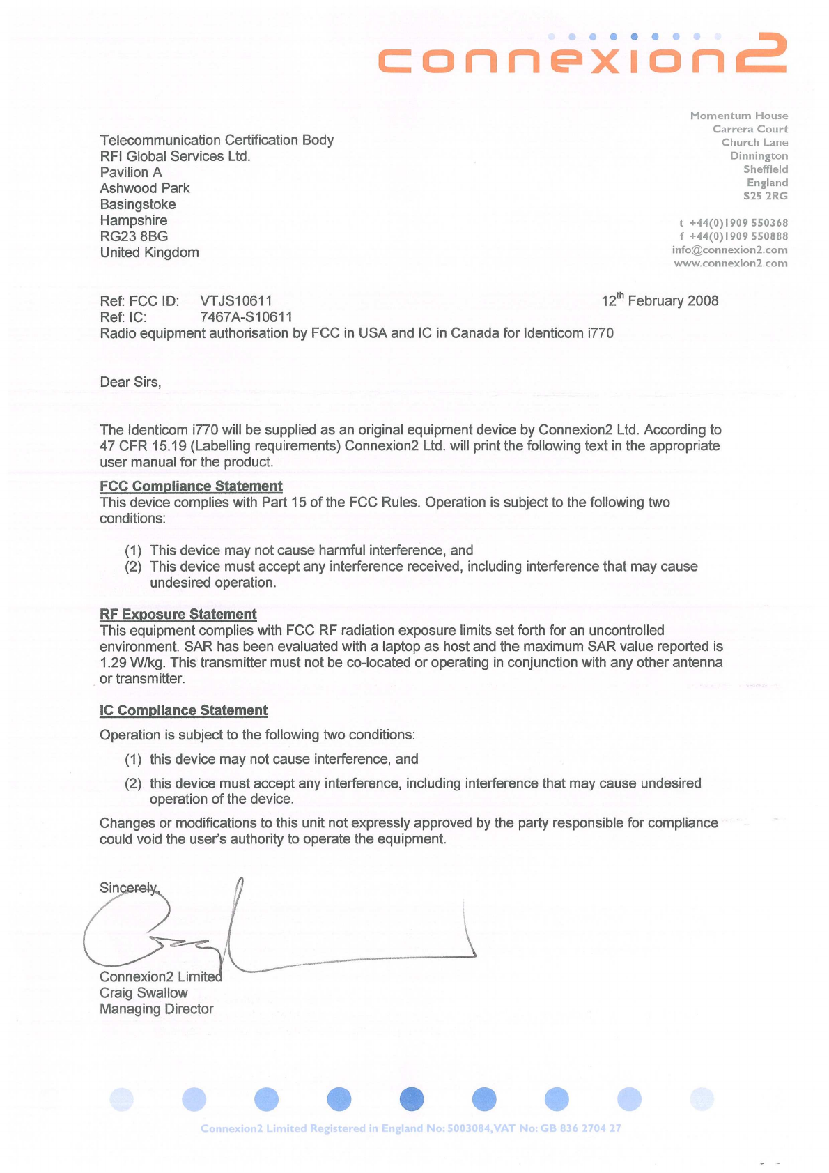 SoloProtect S10611 IDENTICOM i700 User Manual Statement
