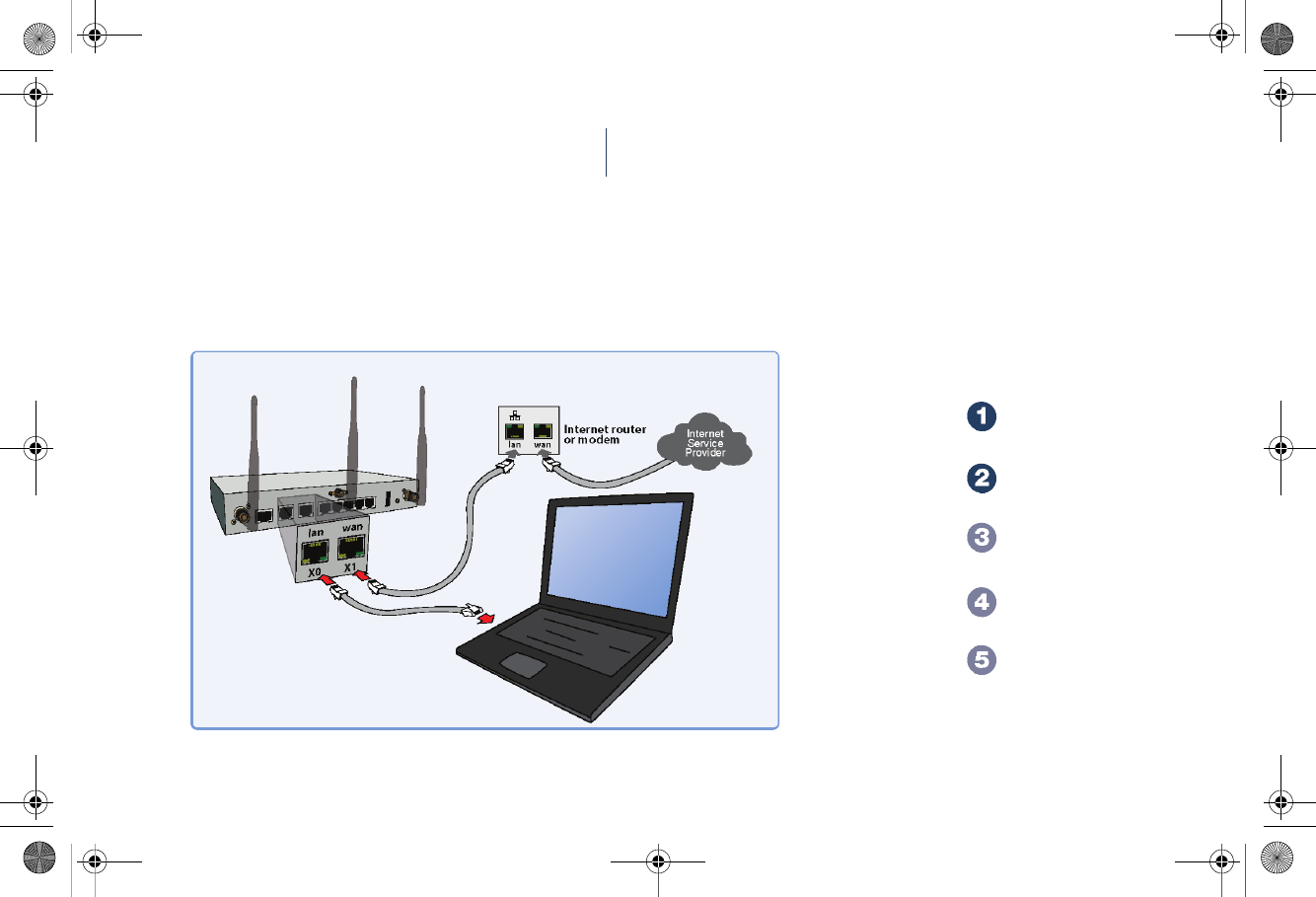 Connect the SonicWALL TZ 210 series appliance using standard CAT-5 Ethernet cables as shown in the