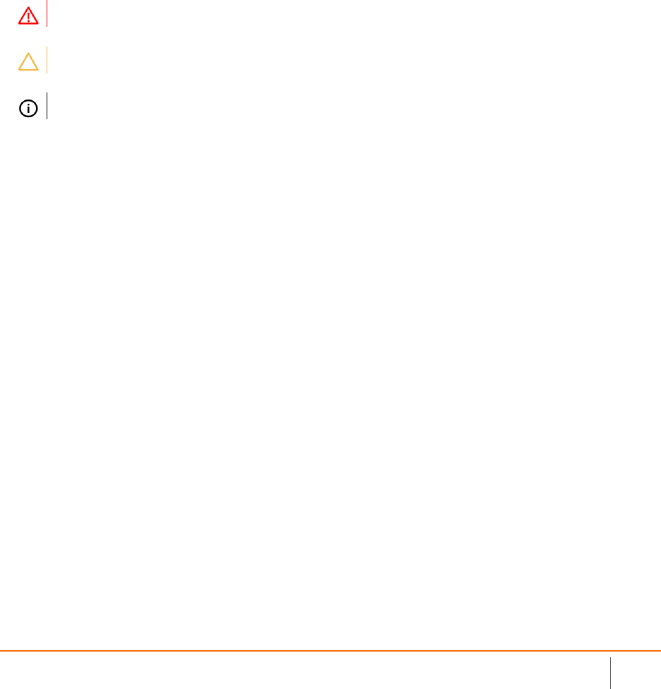 CAUTION: A CAUTION icon indicates potential damage to hardware or loss of data if instructions are not followed.