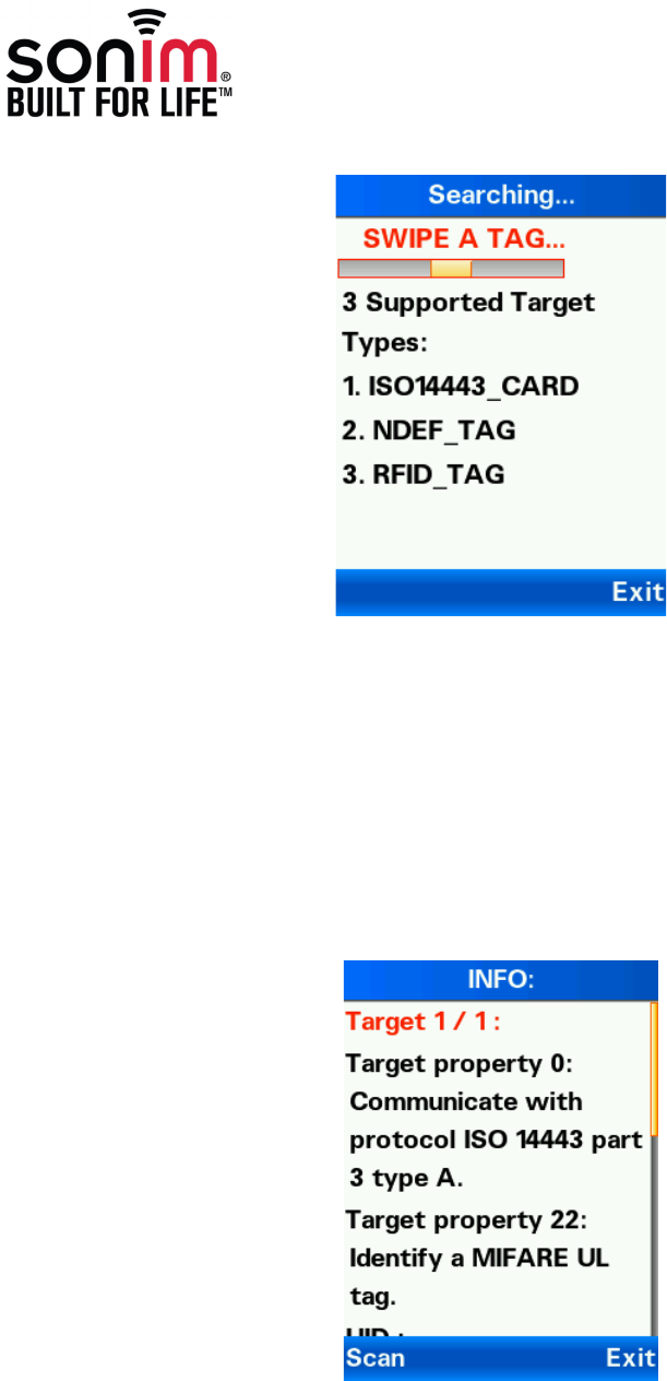 is ready to read NFC ISO 14443 compliant tags. Hold the phone with the NFC BCA at a