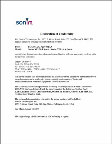 Sonim Technologies, Inc. Tri-band GSM/GPRS 850/1800/1900 Mobile Phone with Bluetooth; Type: P23C001AA