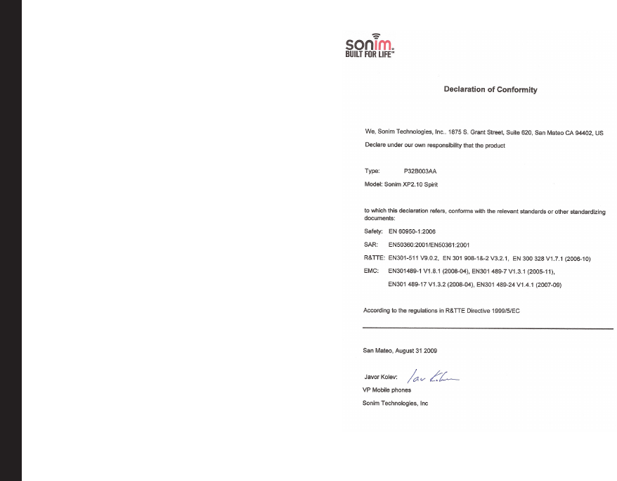 for the Sonim XP2.10 SPIRIT model. The contents of this