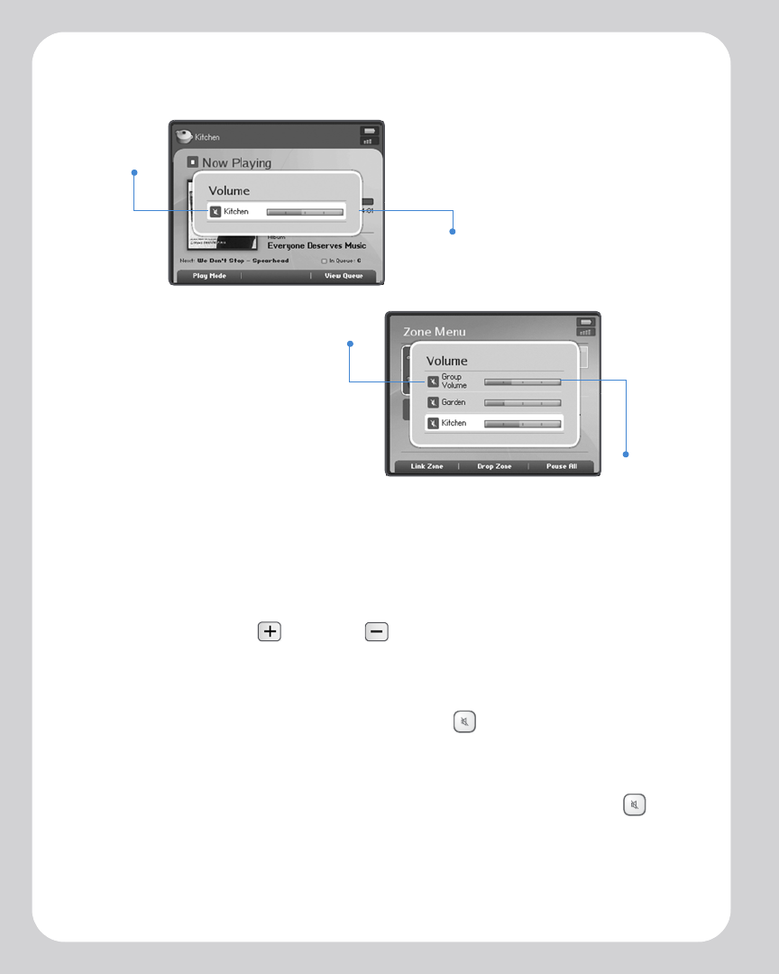 5. To mute all the ZonePlayers in your household, touch and hold the Mute