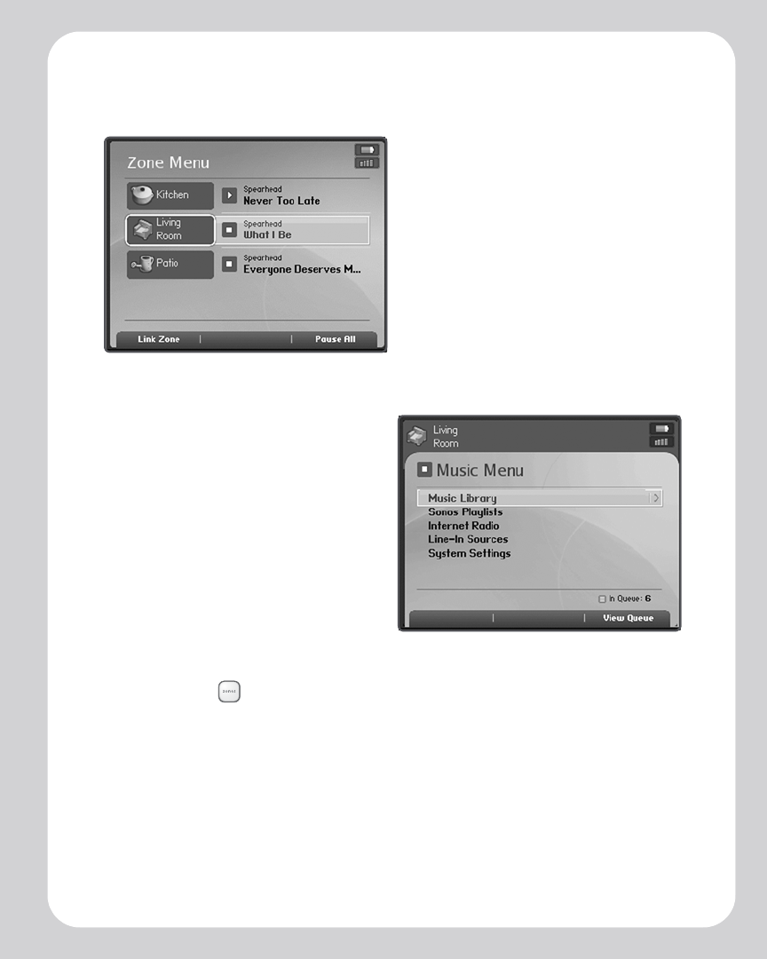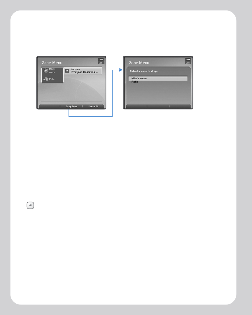 Music you select will play in the zone you highlight on the Zone menu. Use the scroll