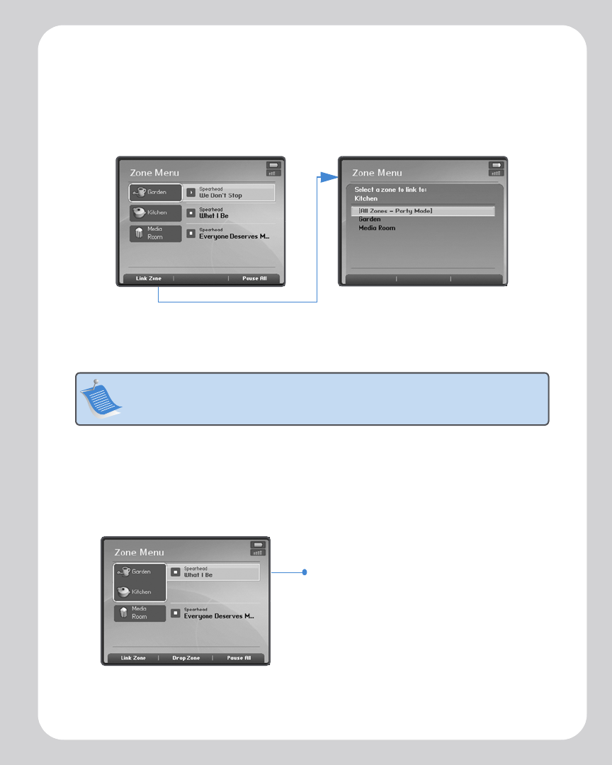 2. Highlight the zone or zone group you want to add a zone to, and touch Link