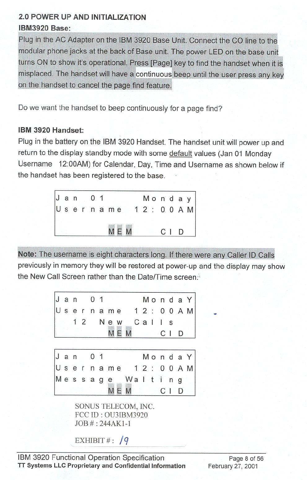 Sonus Telecom IBM3920 2.4 GHz DSS Digital Cordless Telephone User Manual users manual 1
