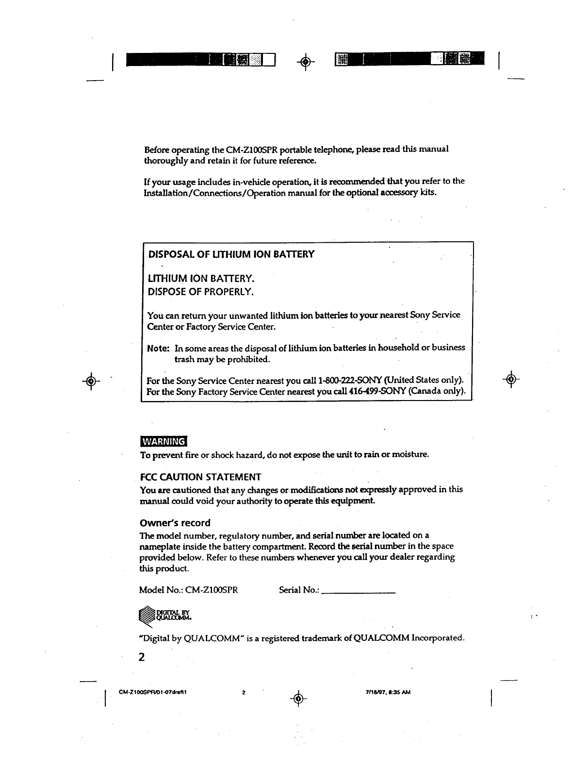 Sony Electronics CMZ100SB2 User Manual USERS MANUAL