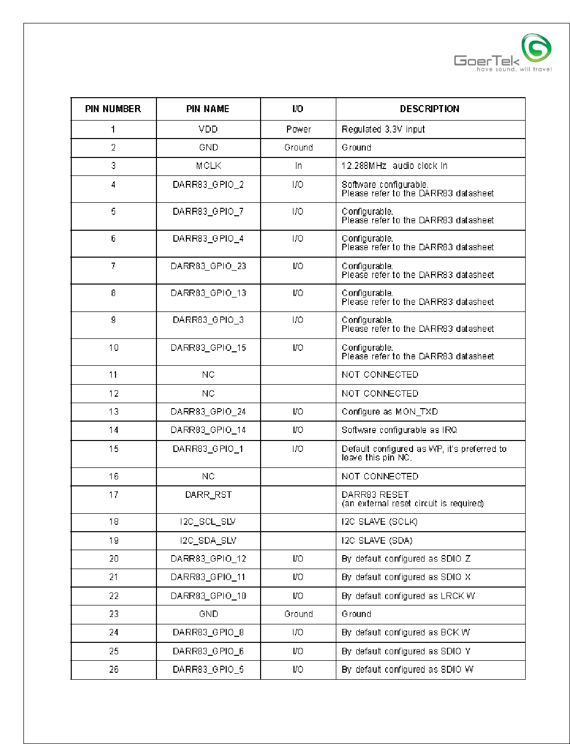 All information contained in this document is the exclusive property of GoerTek Electronics, Inc.