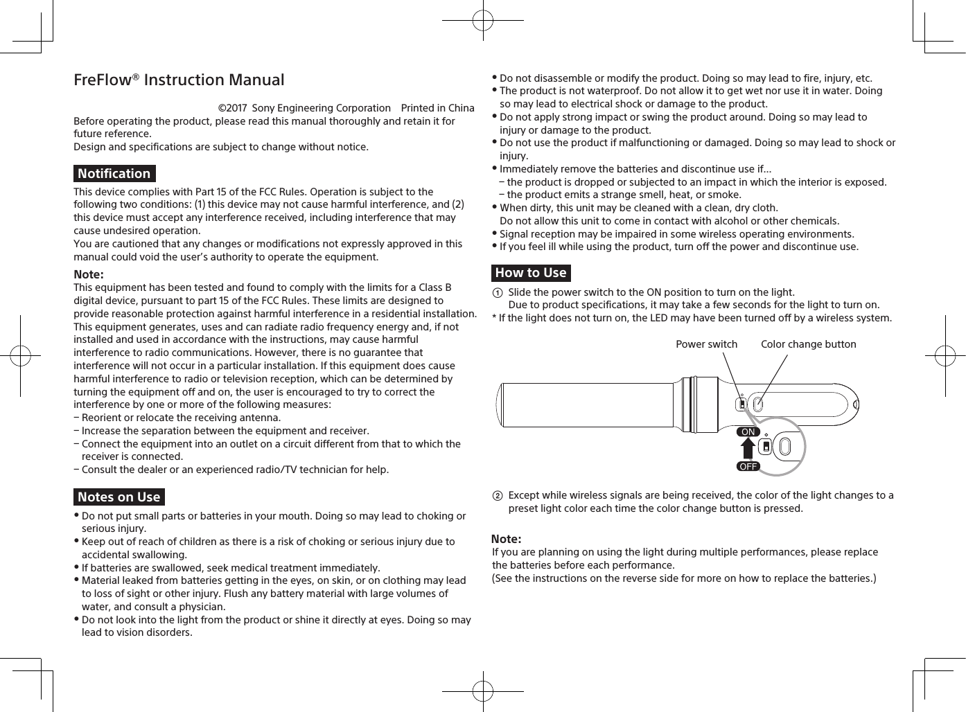 Sony Group FFS-B RF glow-stick receiver User Manual Users manual