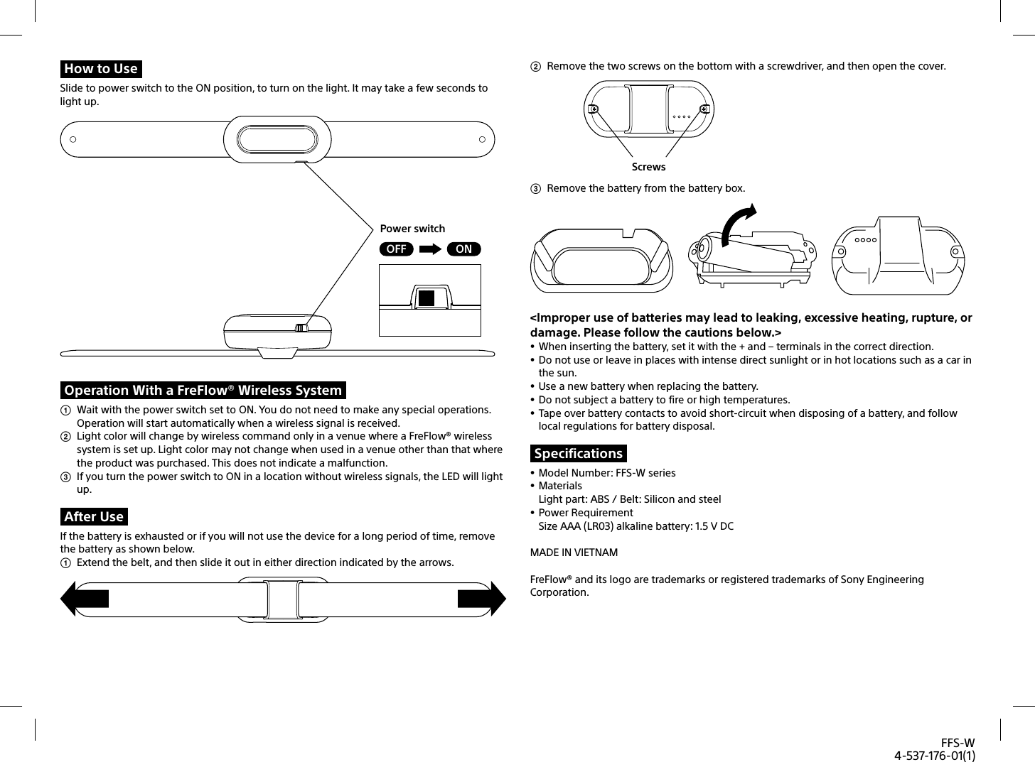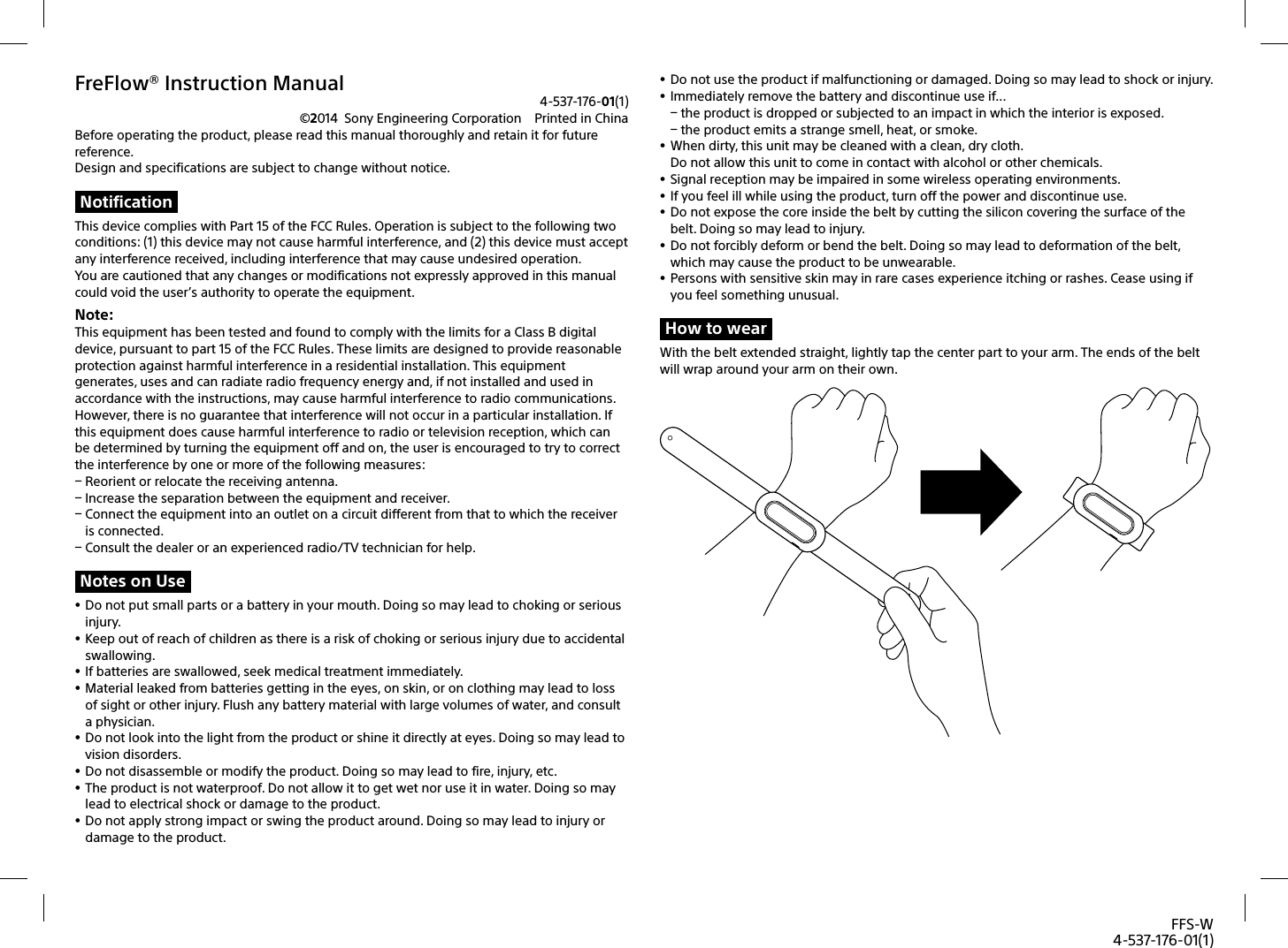 Sony Group FFS-L RF glow-wristband receiver User Manual FFS W